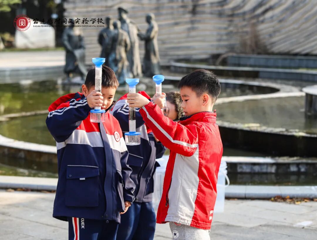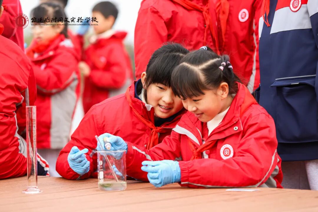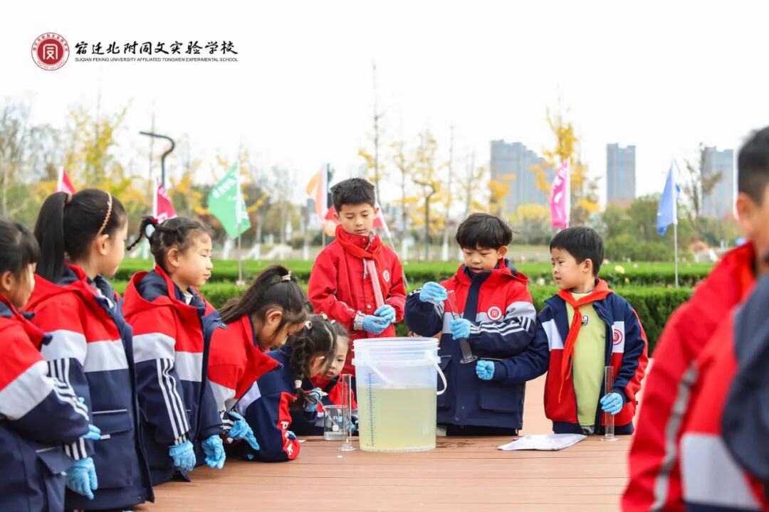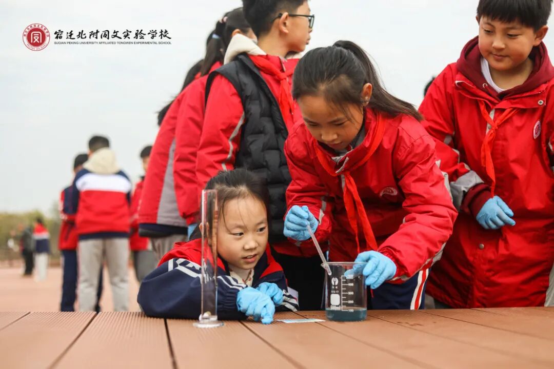 在駱馬湖觀景平臺,同學(xué)們分組進行水樣采集,使用便攜式水質(zhì)檢測工具進行 pH 值、亞硝酸鹽、氨氮等關(guān)鍵指標(biāo)檢測,并記錄數(shù)據(jù),分析水質(zhì)狀況、對比探究南北方水質(zhì)。