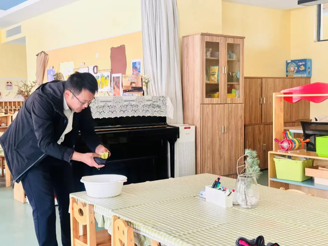活動(dòng)中,家長(zhǎng)還積極承擔(dān)保育工作,一絲不茍地整理,為孩子們營(yíng)造了一個(gè)干凈、溫馨的環(huán)境。