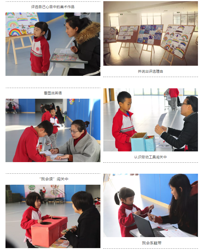 本次活動(dòng)項(xiàng)目包含了學(xué)生所學(xué)的所有學(xué)科知識(shí),涵蓋學(xué)校課程體系中的語(yǔ)言與文學(xué)、數(shù)學(xué)與思維、人文與社會(huì)、科學(xué)與技術(shù)、藝術(shù)與審美、運(yùn)動(dòng)與健康、自我管理、綜合實(shí)踐。具體內(nèi)容有拼讀、識(shí)字、讀和背、認(rèn)字說(shuō)詞語(yǔ)、看圖問(wèn)答、我會(huì)數(shù)、認(rèn)左右、比大小、我會(huì)擺、我會(huì)算、會(huì)測(cè)量、會(huì)看圖列式、會(huì)解決問(wèn)題、會(huì)認(rèn)角、會(huì)數(shù)角、看圖識(shí)別勞動(dòng)工具、美術(shù)選作品、評(píng)作品、系鞋帶、徒手操、模唱歌曲、活動(dòng)拓展。其中,學(xué)習(xí)管理一項(xiàng)主要是考查學(xué)生的課堂自我約束、情緒管理等認(rèn)知。