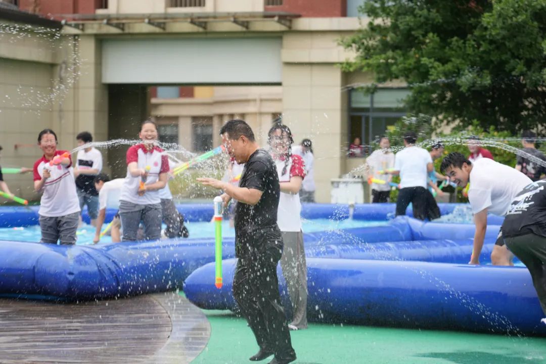 在同學(xué)們的盛情邀約下,平日里嚴(yán)肅的老師們也加入其中,師生同樂(lè),共享這份夏日的清涼。