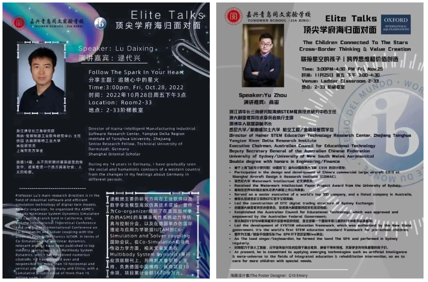 今年,我們和清華長三角研究院人才庫合作,開設(shè)海外精英面對(duì)面論壇,結(jié)合時(shí)下流行話題及相關(guān)行業(yè)發(fā)展態(tài)勢(shì),為孩子們帶來別開生面,意義非凡的分享!