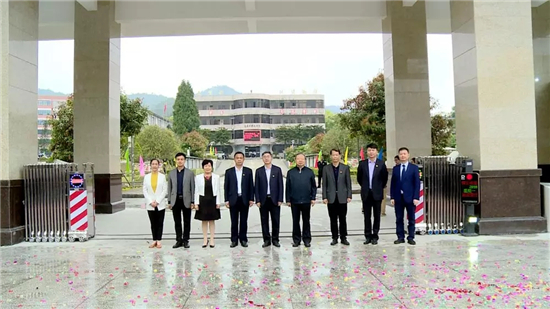 致辭環(huán)節(jié)后,連平縣俞志鋒縣委書記、林文泉縣長、朱煥榮縣人大主任、曾麗霞縣政協(xié)主席、吳衛(wèi)縣委常委,原北大吳寶科副總教務長,青鳥同文教育鄭彤總經理,教科院李洪恩博士共同揭牌。